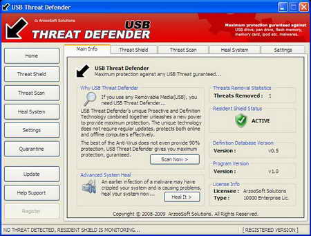 ArzooSoft USB Threat Defender v1.0 英文正式版(給你的USB移動設備最大限度的反病毒保護)
