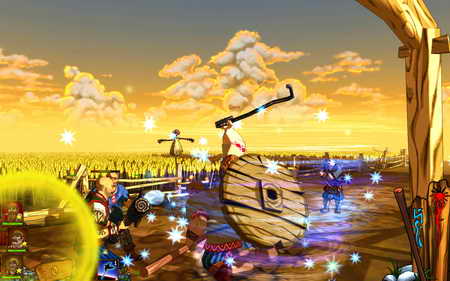 《傳說故事:三英雄》是一個動作冒險類型的遊戲,擁有卡通風格視覺效果和易於