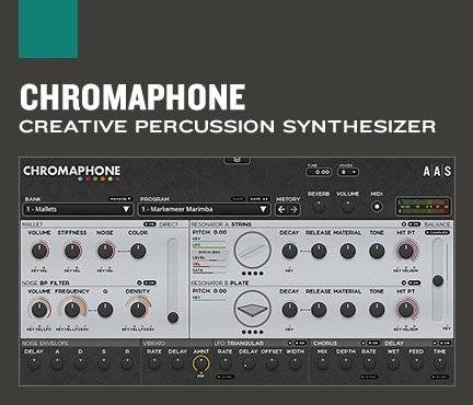 Chromaphone 結合了聲學共鳴來創建打擊樂音色。具有各種豐富的配置以及靈活的噪音源。